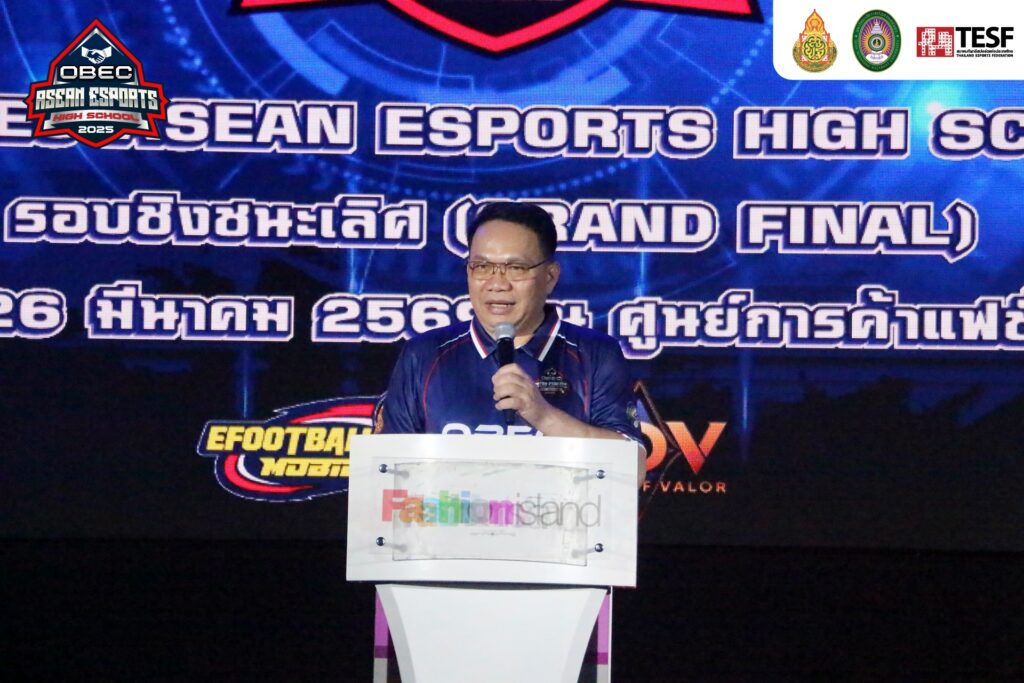“The grand finals feature two competition categories: ROV (Team Category) with 16 teams and eFootball Mobile (Individual Category) with 16 players, competing for the ultimate championship of the year. The opening ceremony on March 25, 2026, was presided over by Dr. Pichet Phophakdee, Secretary-General of the Office of the Basic Education Commission (OBEC).