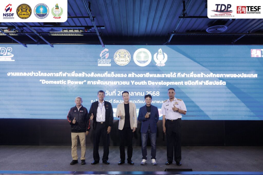 สมาคมกีฬาอีสปอร์ตแห่งประเทศไทย โดยนาย สันติ โหลทอง นายกสมาคมฯ จัดงานแถลงข่าวเปิดตัว “โครงการกีฬาเพื่อสร้างสังคมที่แข็งแรง สร้างอาชีพและรายได้ กีฬาเพื่อสร้างศักยภาพของประเทศ “Domestic Power” การพัฒนาเยาวชน Youth Development ประจำปี 2568” ชนิดกีฬาอีสปอร์ต ขึ้นที่ Thailand Esports Staium เมื่อวันที่ 20 ตุลาคม 2568