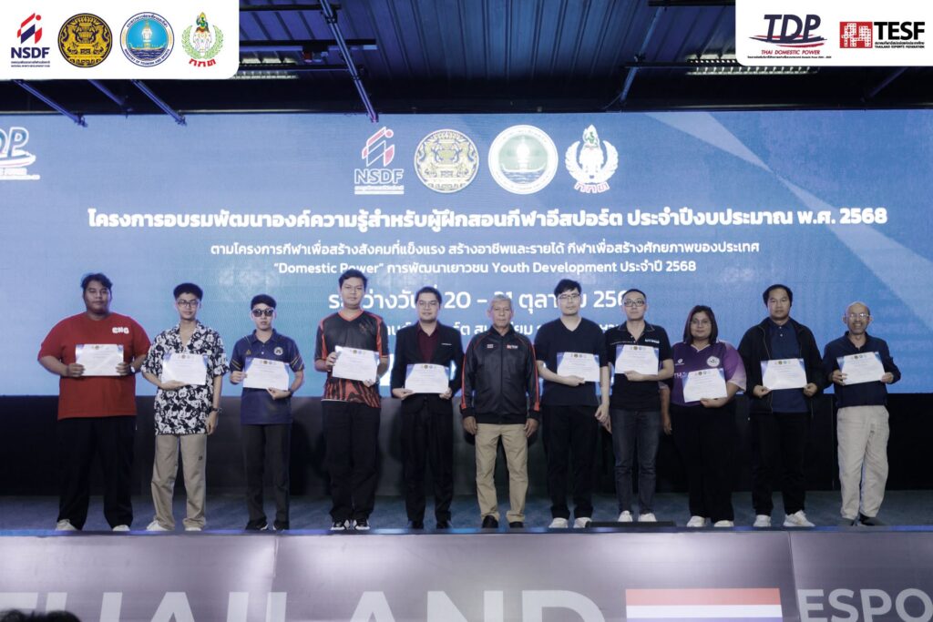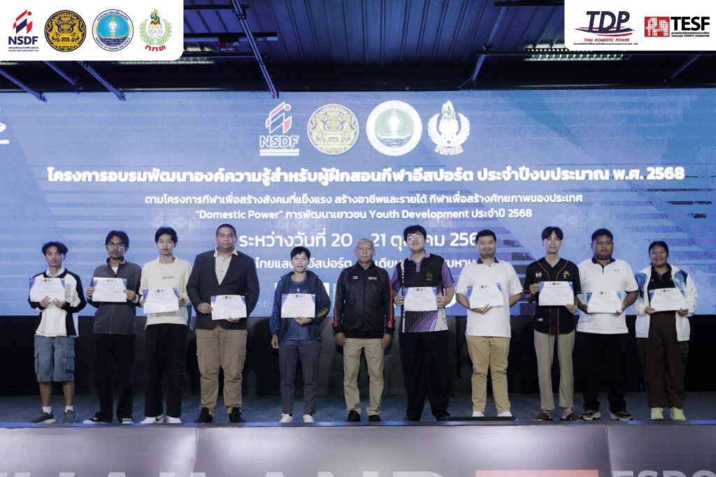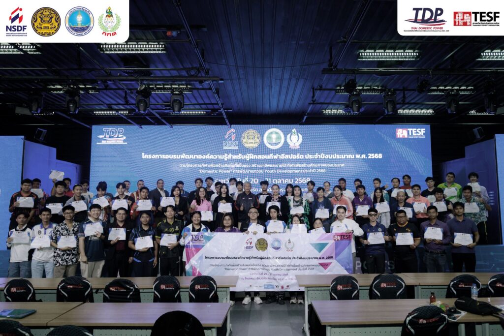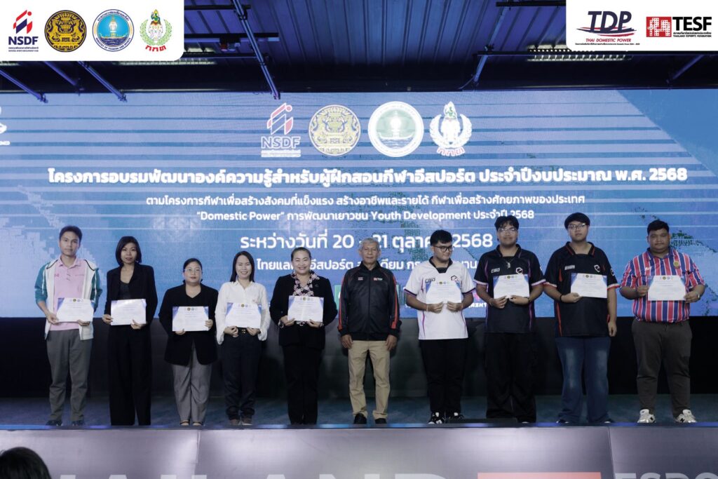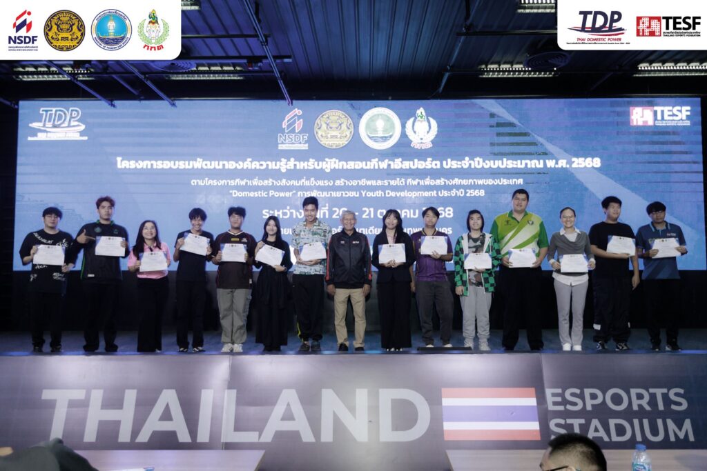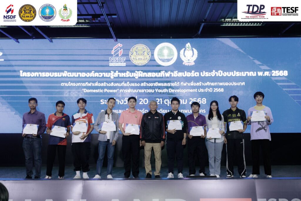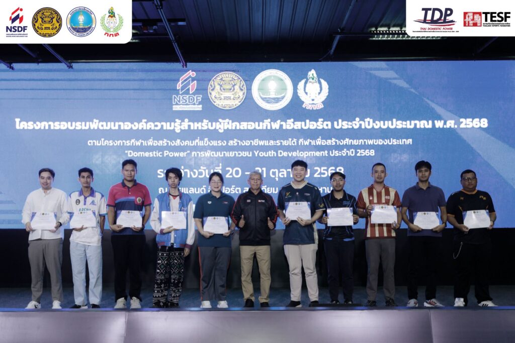 การอบรมโครงการพัฒนาองค์ความรู้สำหรับผู้ฝึกสอนกีฬาอีสปอร์ต ตามโครงการกีฬาเพื่อสร้างสังคมที่แข็งแรง สร้างอาชีพและรายได้ กีฬาเพื่อสร้างศักยภาพของประเทศ “Domestic Power” การพัฒนาเยาวชน Youth Development ประจำปี 2568 ซึ่งจัดขึ้นเมื่อ วันที่ 20 – 21 ตุลาคม 2568 ณ ไทยแลนด์ อีสปอร์ต สเตเดียม กรุงเทพมหานคร